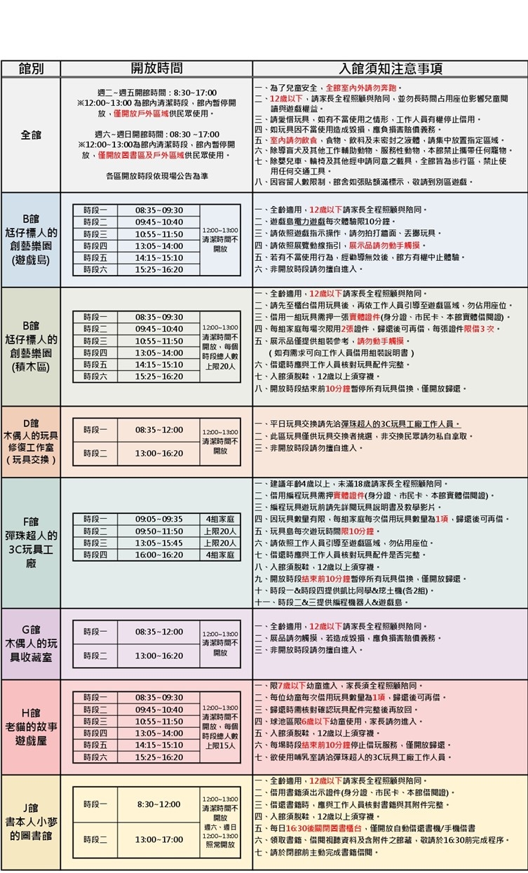 各區開放時間