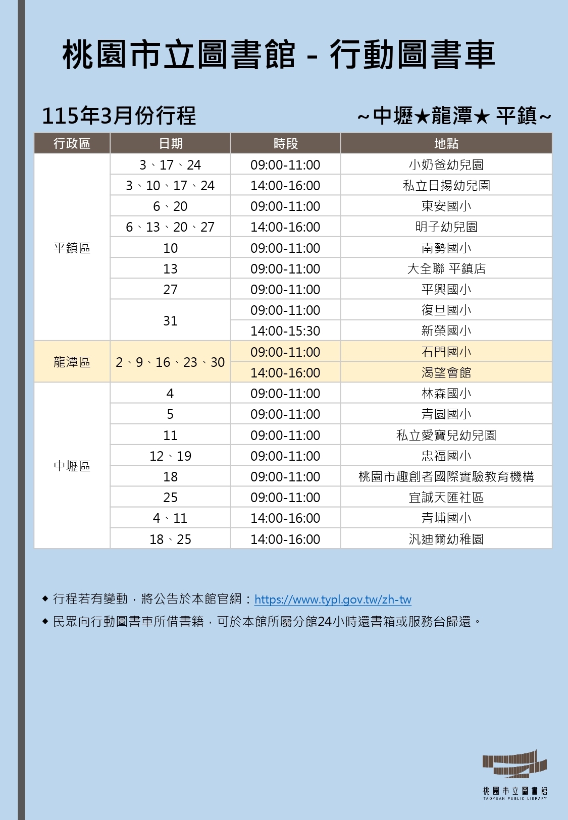 115年3份月行動圖書車行程表-中壢線