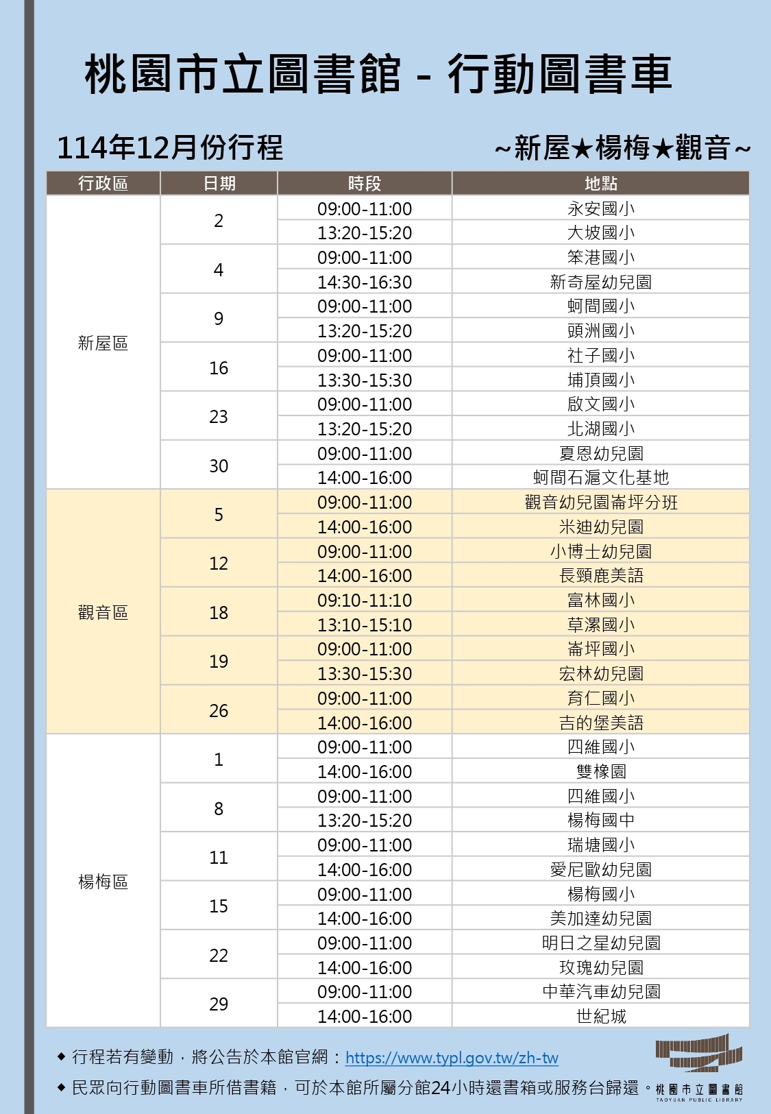 114年12月份行動圖書車行程表-新屋線