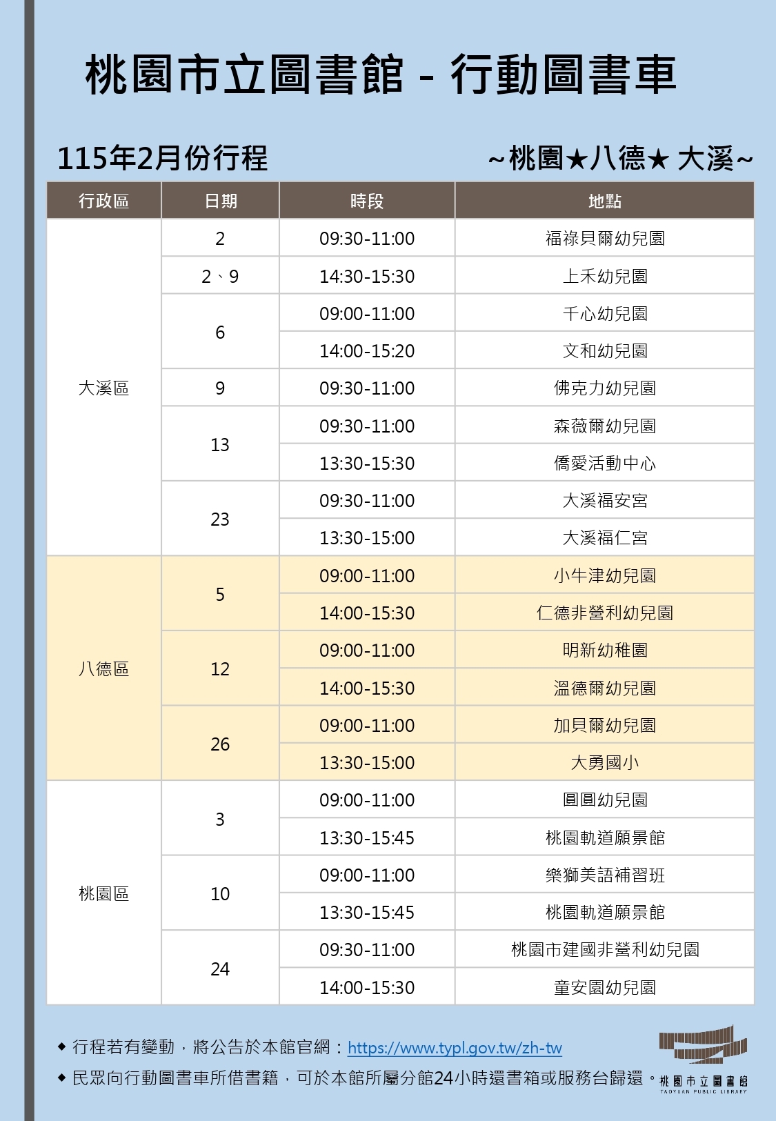 115年2月份行動圖書車行程表-桃園線