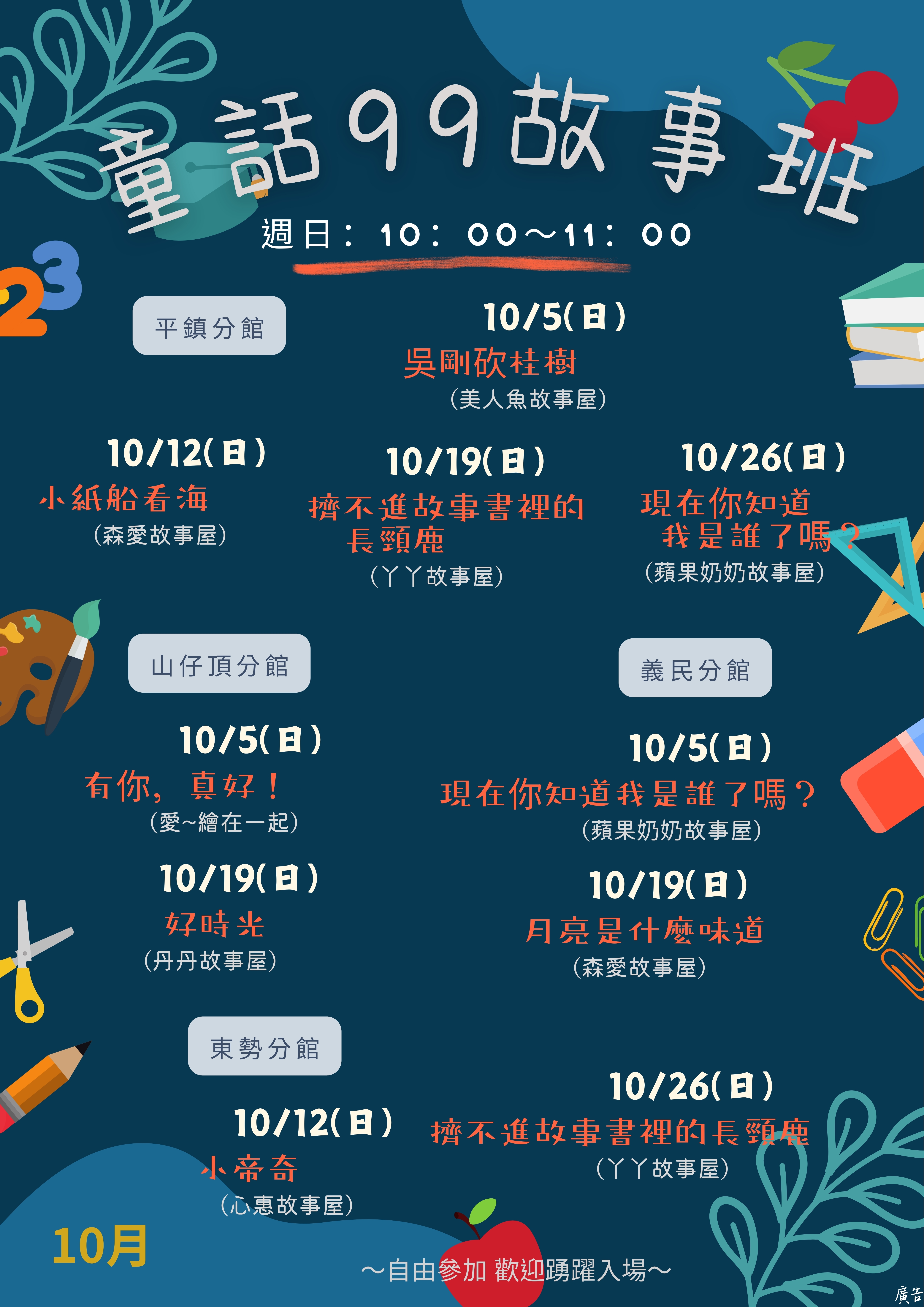 平鎮分館 | 10/5 | 美人魚故事屋 | 吳剛砍桂樹 |