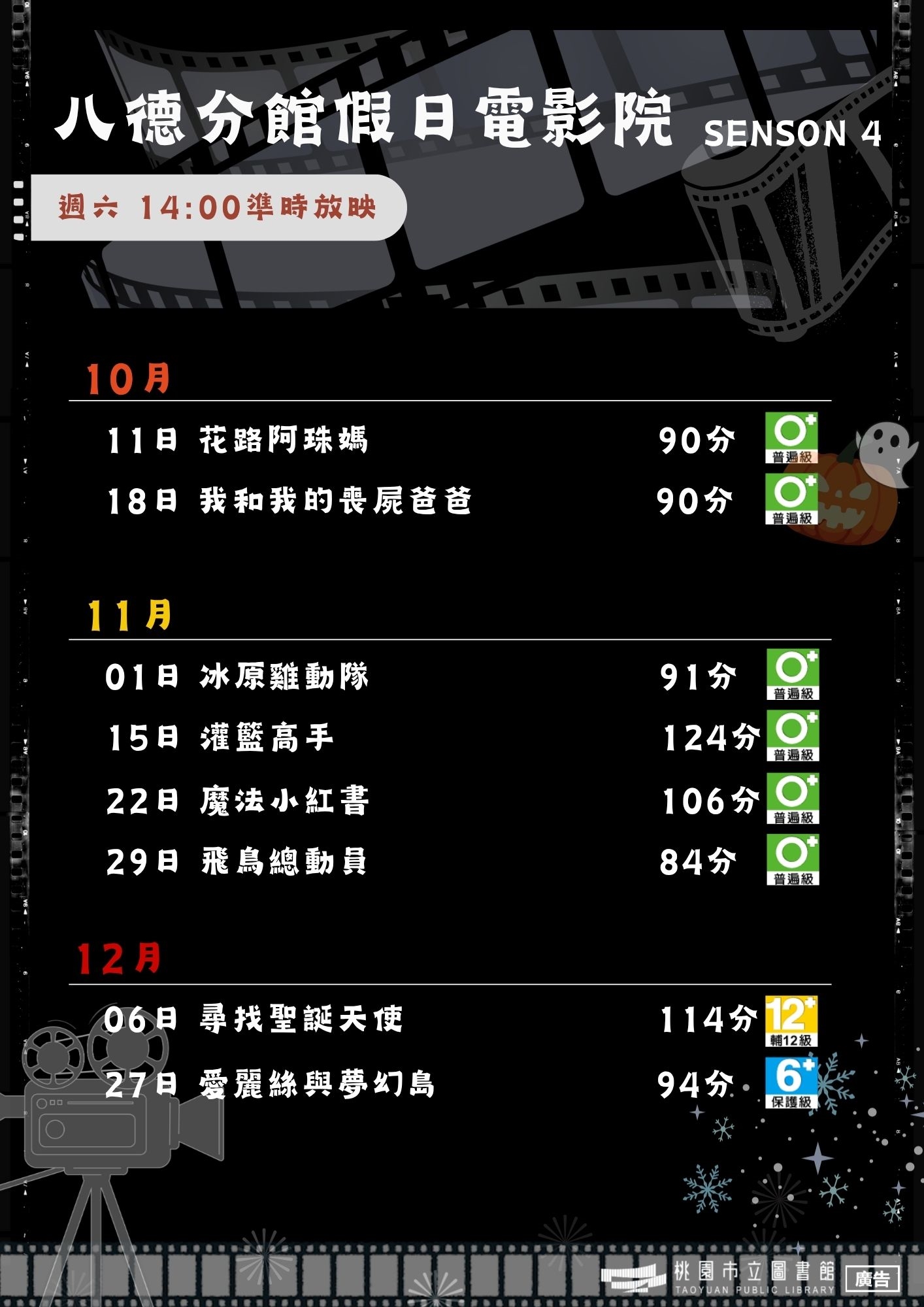 (10/4、10/25、11/08、12/13、12/20 因國定假日及活動取消電影撥放)