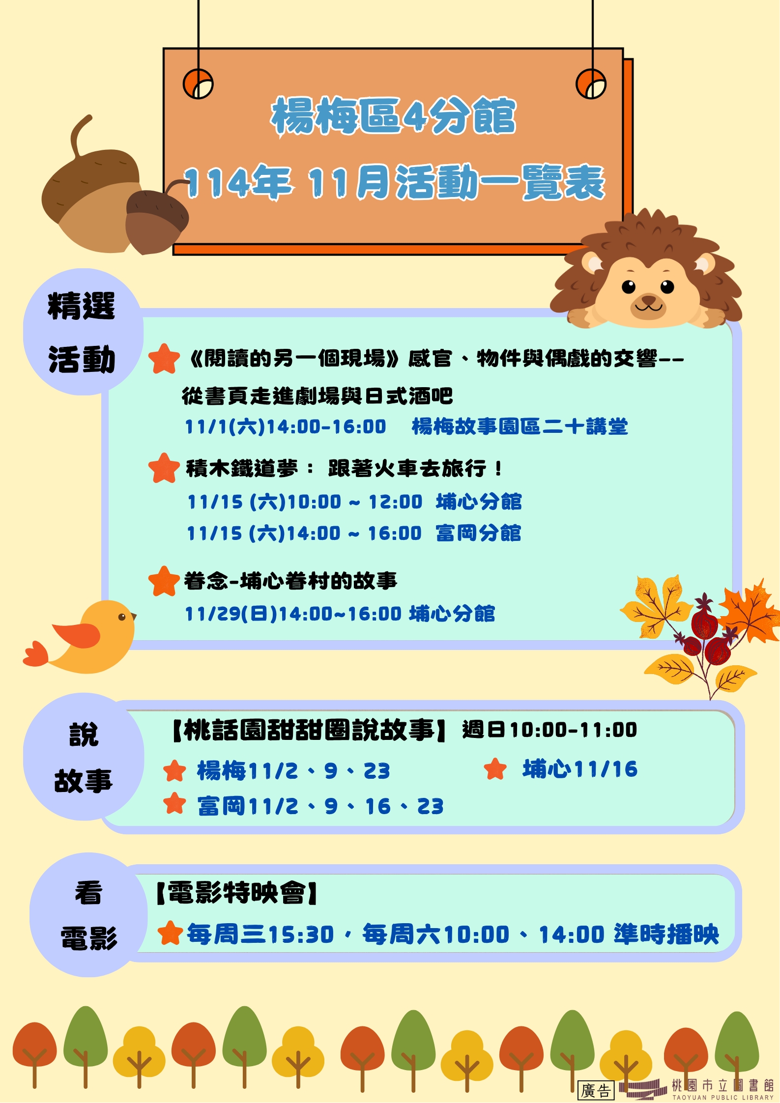 (NEW!!!)楊梅區4分館114年11月活動搶先看!!