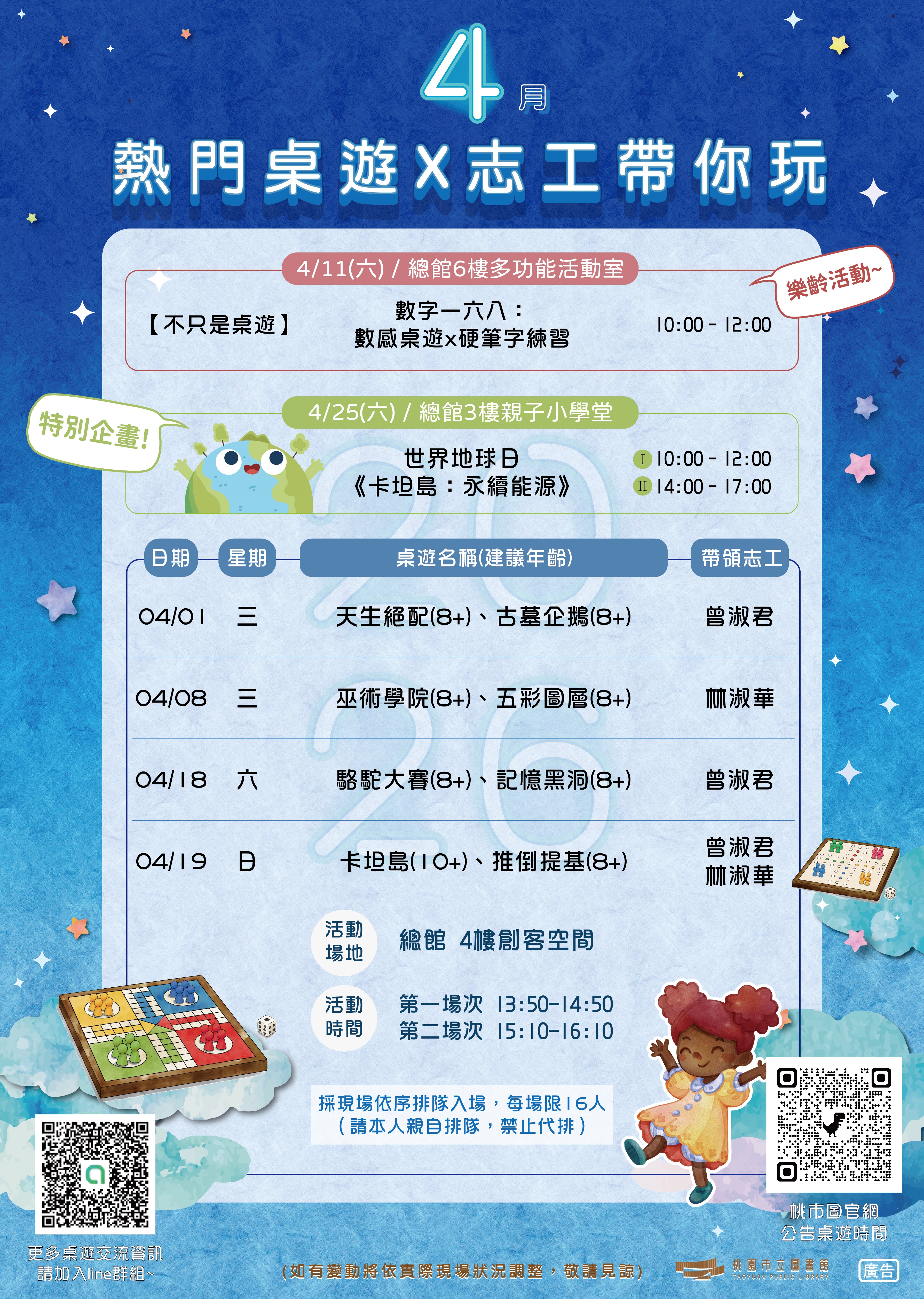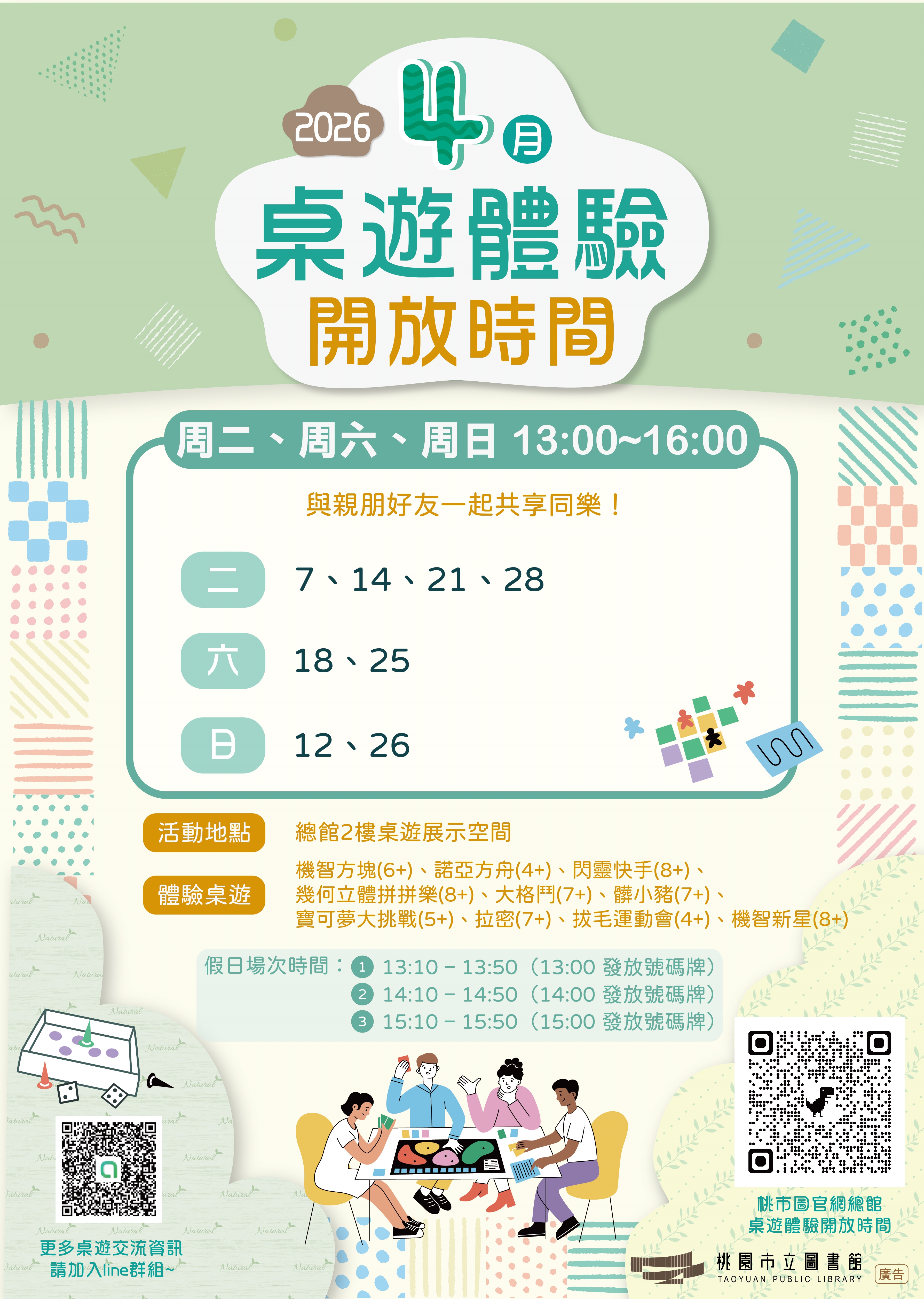 📢【總館 4 月桌遊體驗活動公告】(活動時間如有異動,以官網公告為準)