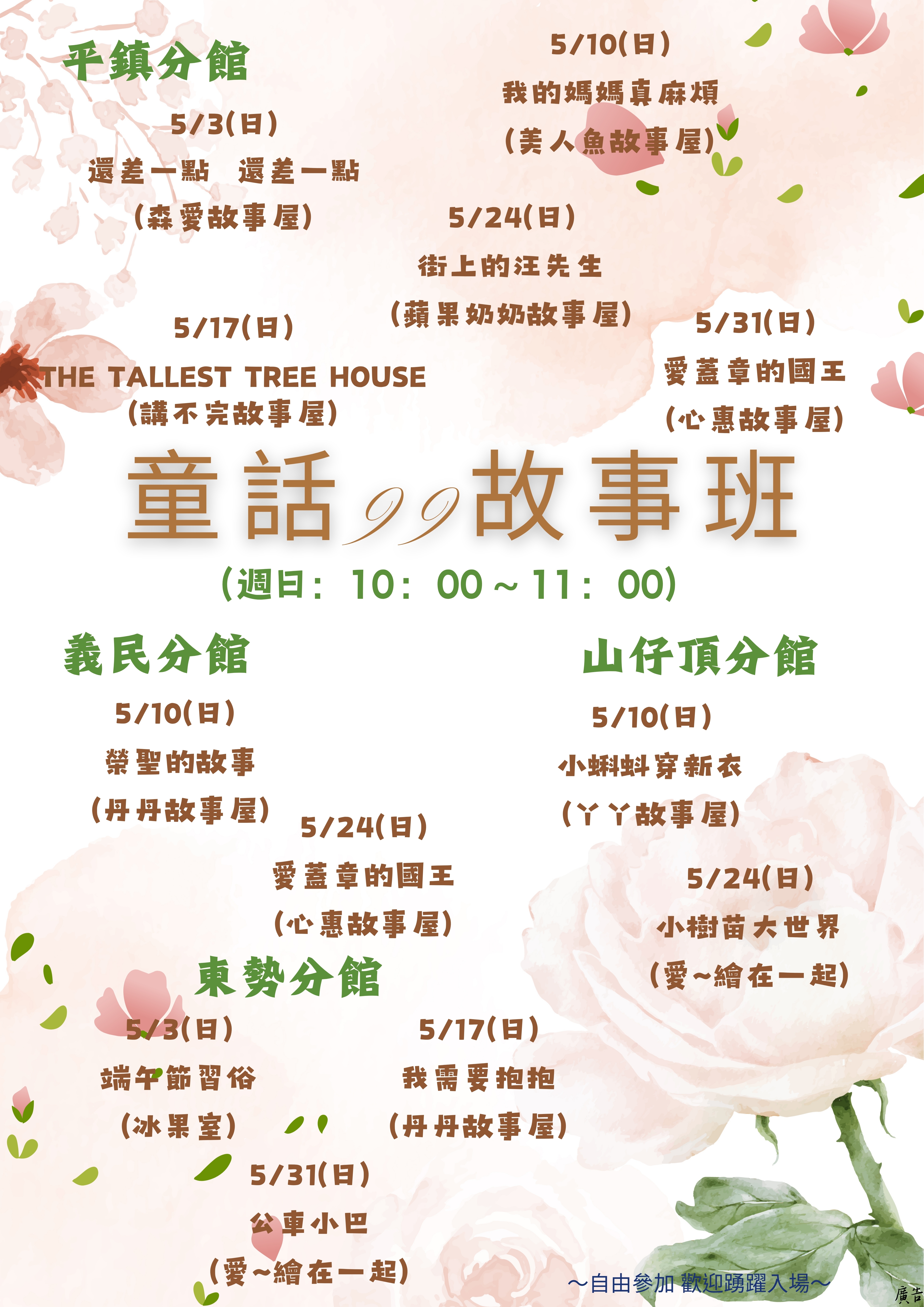 | 義民分館 | 5/10 | 丹丹故事屋 | 榮聖的故事 |