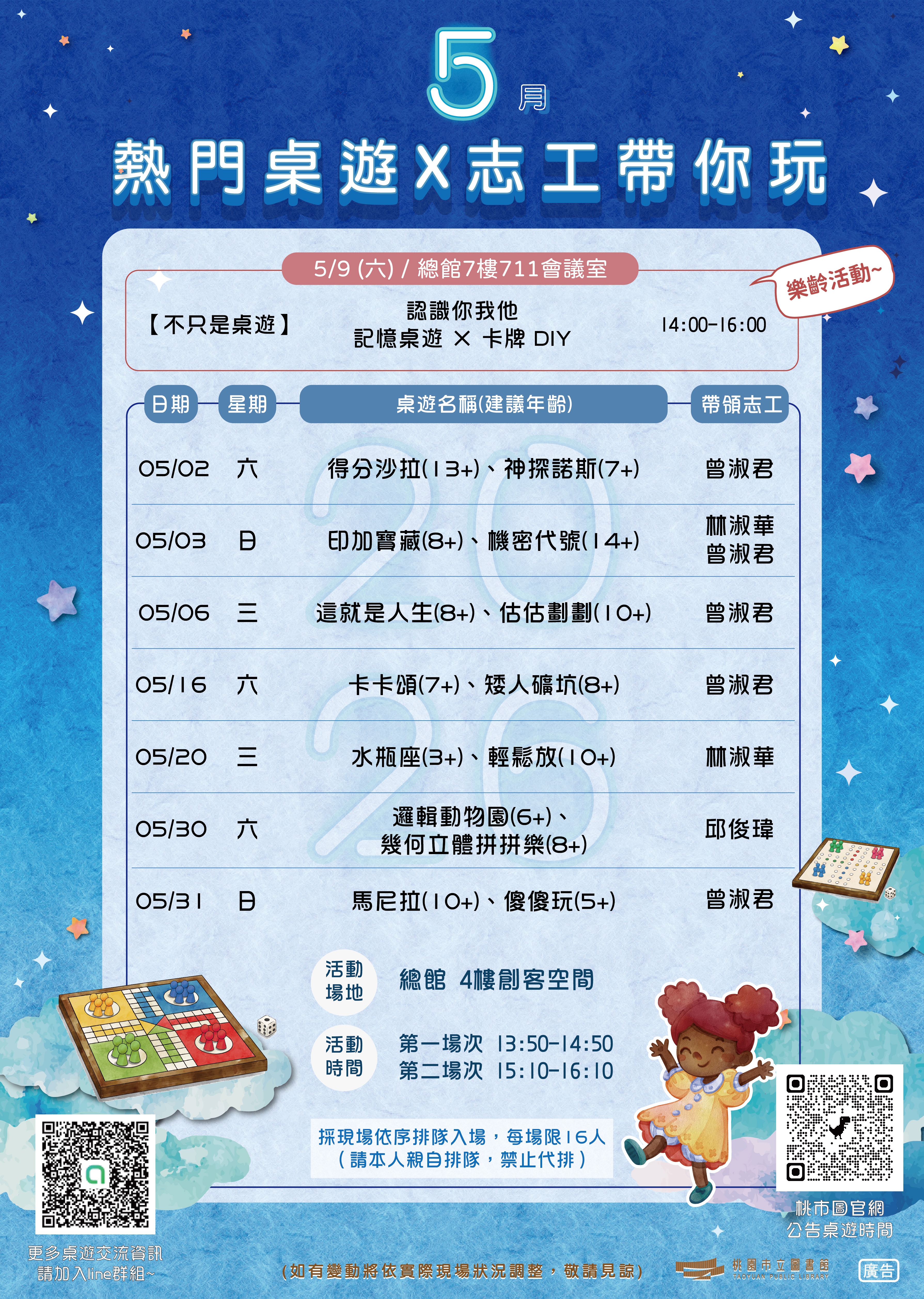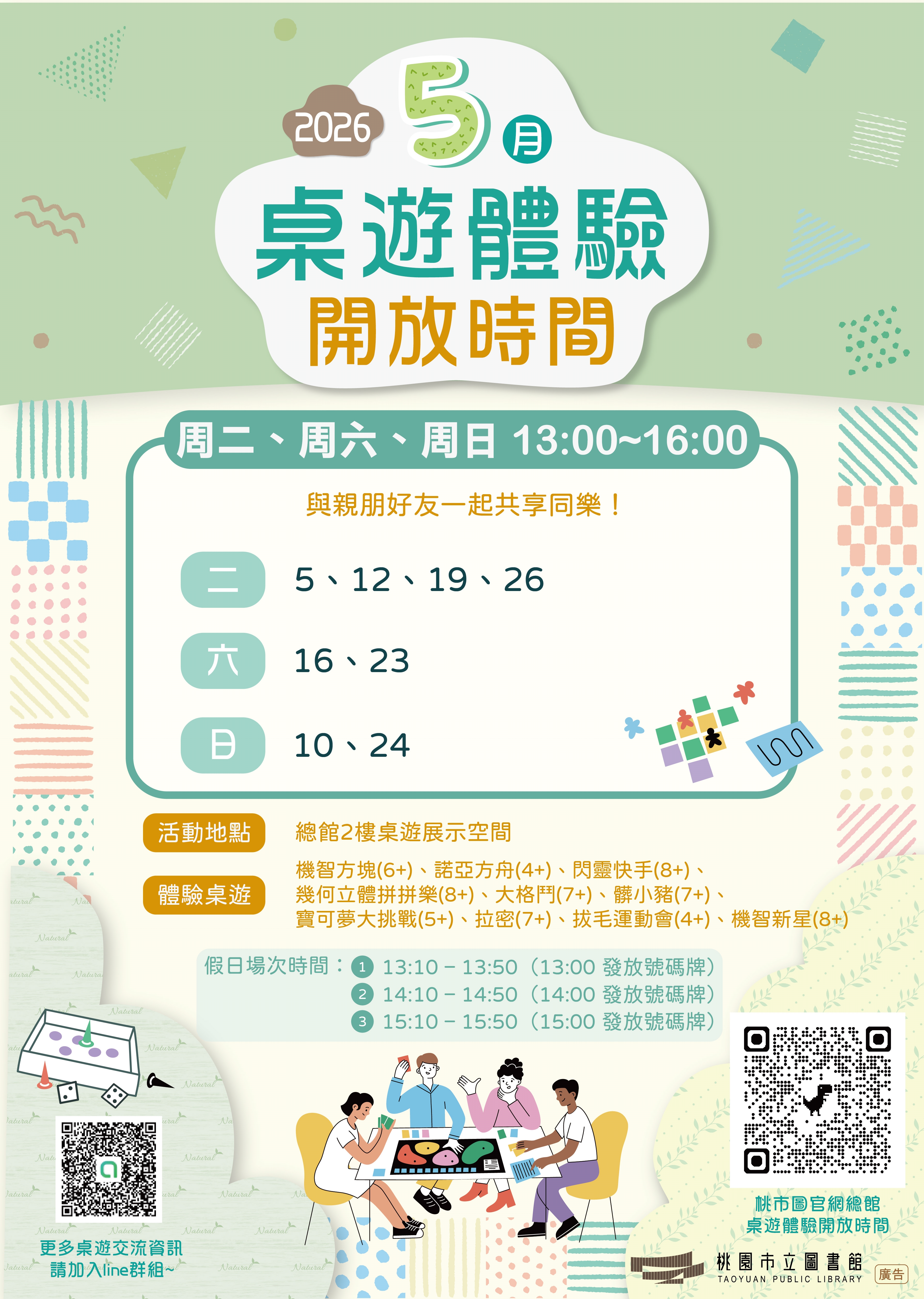 📢【總館5月桌遊體驗活動公告】(活動時間如有異動,以官網公告為準)