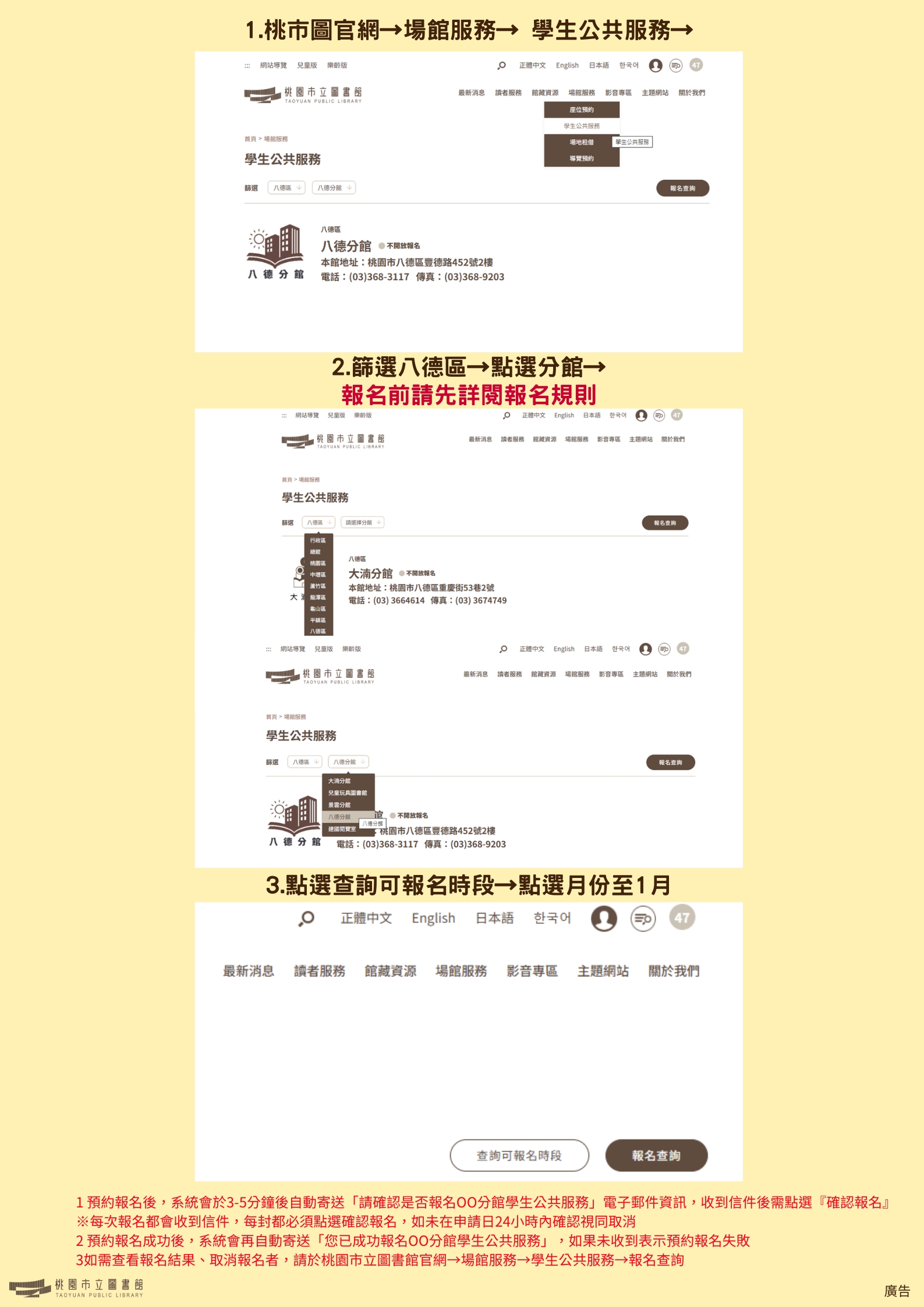 1. 八德區分館學生志工報名路徑: