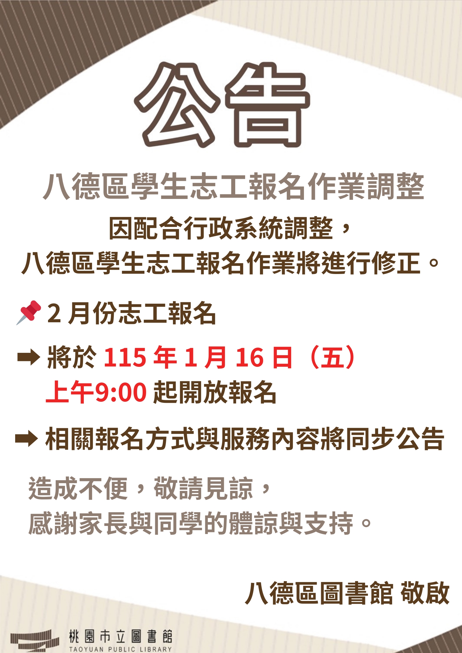 八德區學生志工報名作業調整