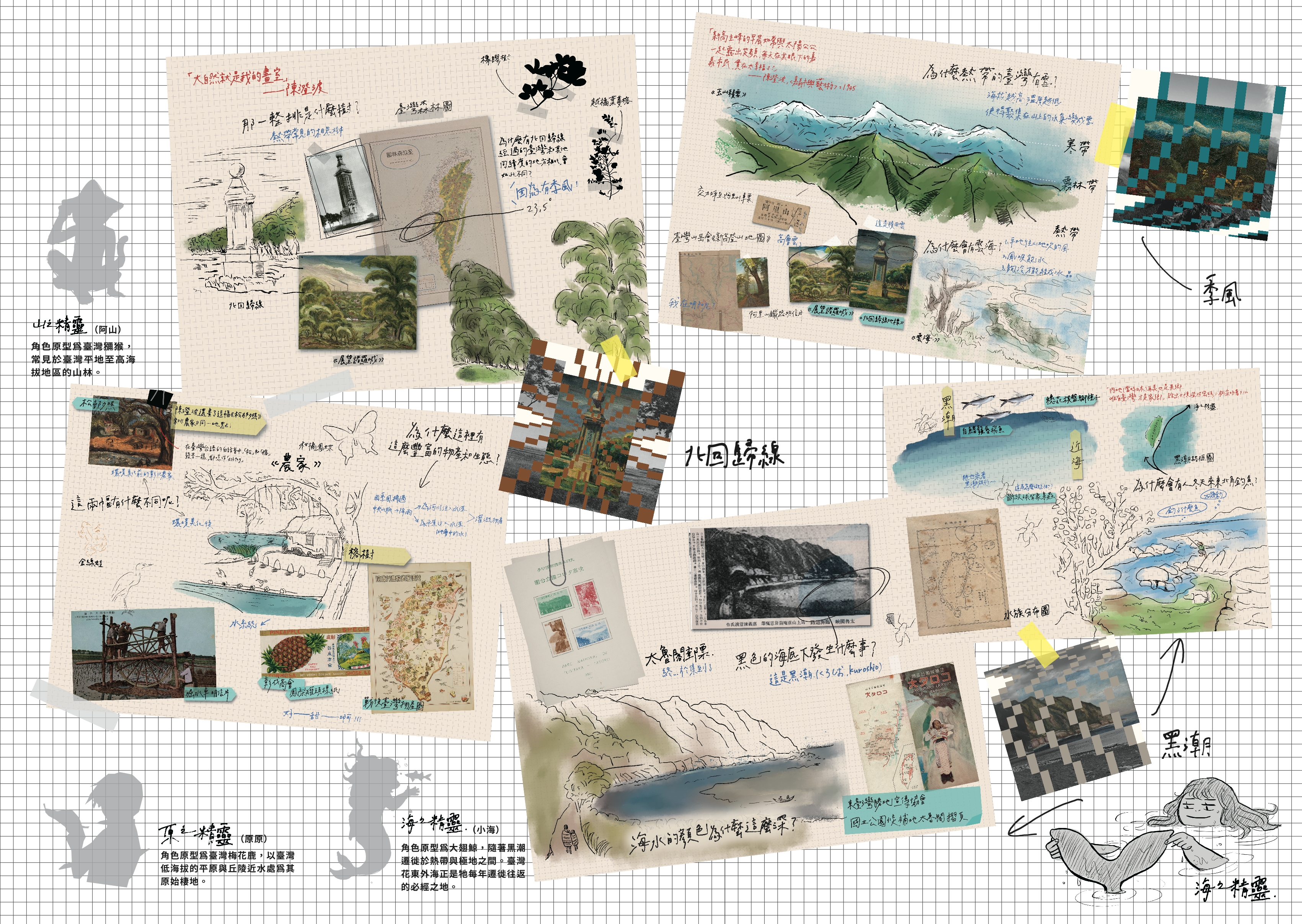從清代文獻對臺灣山海的描述,到近代地圖、攝影與地質研究成果,我們將藝術視為一種時代的觀察紀錄,與地質學所揭示的長時間尺度自然演化相互對話。